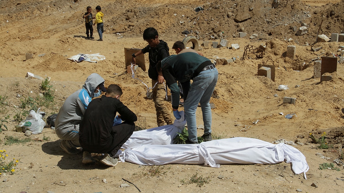 İsrail ordusunun aylar süren saldırı ve işgalinin ardından çekildiği Gazze Şeridi'nin güneyindeki Han Yunus kentinde toplu mezarlar ortaya çıkarılmıştı.
