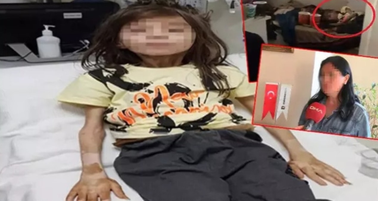 Bursa Uludağ Üniversitesi Hastanesi'ne kaldırılan ve 1 yıldır odada tutulduğu değerlendirilen çocuğun saçları ile tırnaklarının uzadığı, çok zayıfladığı ve vücudunda yaralar olduğu görüldü.