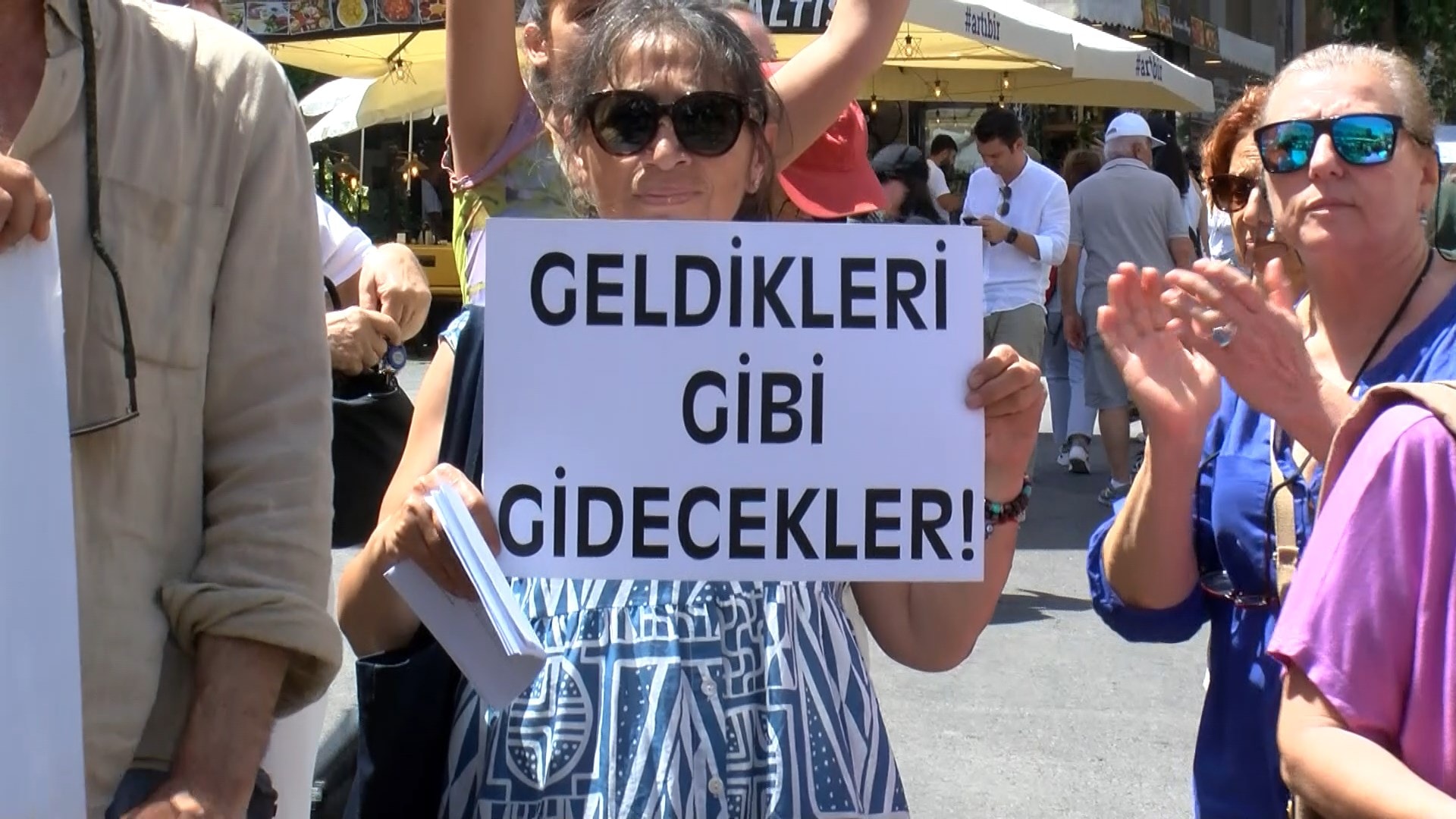 Düdük çalarak İBB’yi protesto eden gruptakiler, “Yürünebilir Adalar için azmanbüs istemiyoruz”, “Adalar’da yürümek istiyoruz”, “16 milyon için direniyoruz”, “Ada’da azmanbüs yasa dışı”, “Ne akülü ne azmanbüs Ada” yazılı pankartlar taşıdı.