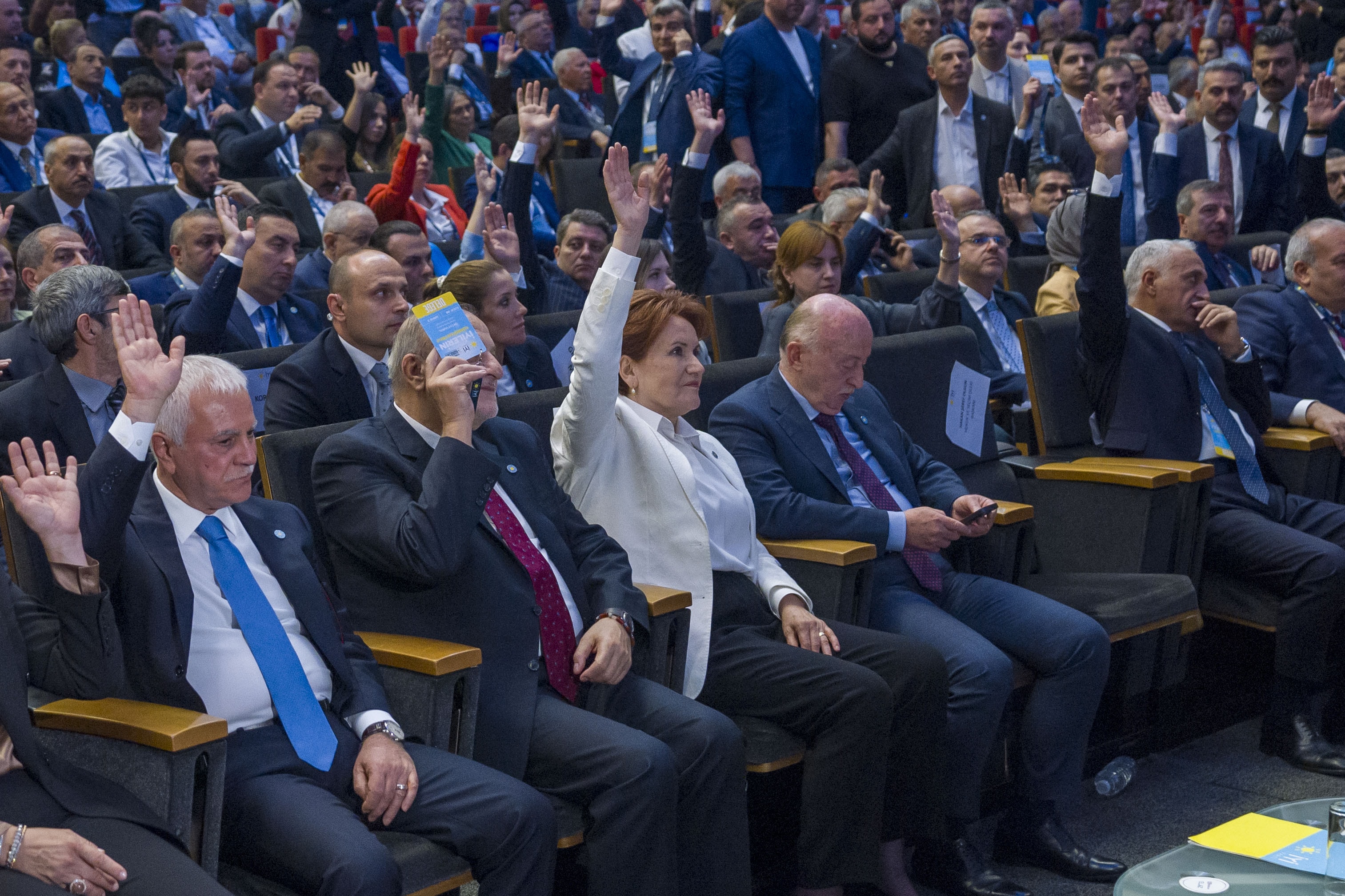 İYİ Partinin 5. Olağanüstü Kurultayı başladı. Delegeler, ATO Congresium’daki kurultayın yapıldığı salonda yerini aldı. İYİ Parti Genel Başkanı Meral Akşener de saat 11.50’de salona geldi.