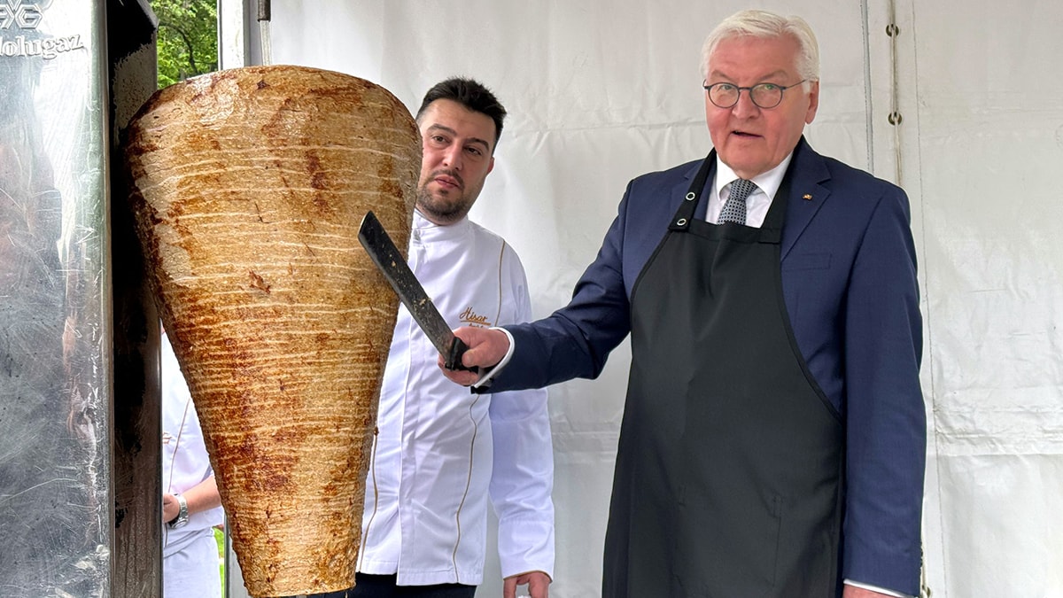 Steinmeier, Berlin’de döner dükkanı işleten üçüncü kuşaktan Arif Keleş’in, Türkiye ziyaretinde kendisine eşlik etmesinden de ayrıca memnuniyet duyduğunu vurgulayarak, “Bana söylenene göre bu dükkan aynı zamanda Alman Milli Futbol Takımı’nın da favori dükkanı. Bugünkü haliyle Berlin’deki Türk misafir işçiler tarafından geliştirilen döner kebap, artık Almanya’nın ulusal yemeği haline geldi. Hiçbir fast food yemeği Almanya’da dönerden daha çok satılmıyor, daha çok yenmiyor, hatta daha çok ihraç edilmiyor” diye konuştu.
