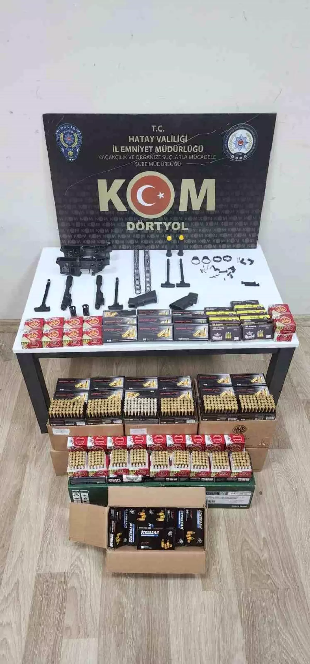 Hatay Emniyet Müdürlüğü ekipleri, şehrin güvenliği ve huzurunu sağlamak amacıyla asayiş çalışmalarına aralıksız devam ediyor. Dörtyol ilçesinde 11 Kasım tarihinde yapılan kargo takibi sonucunda; bir şahıs ve ikametinde arama yapıldı. Yapılan aramada; 11 bin 850 fişek ile 45 muhtelif silah parçaları ele geçirildi. Olayla ilgili olarak E.K. hakkında 6136 sayılı kanuna muhalefetten işlem yapılarak adli makamlara sevk edildi. – HATAY