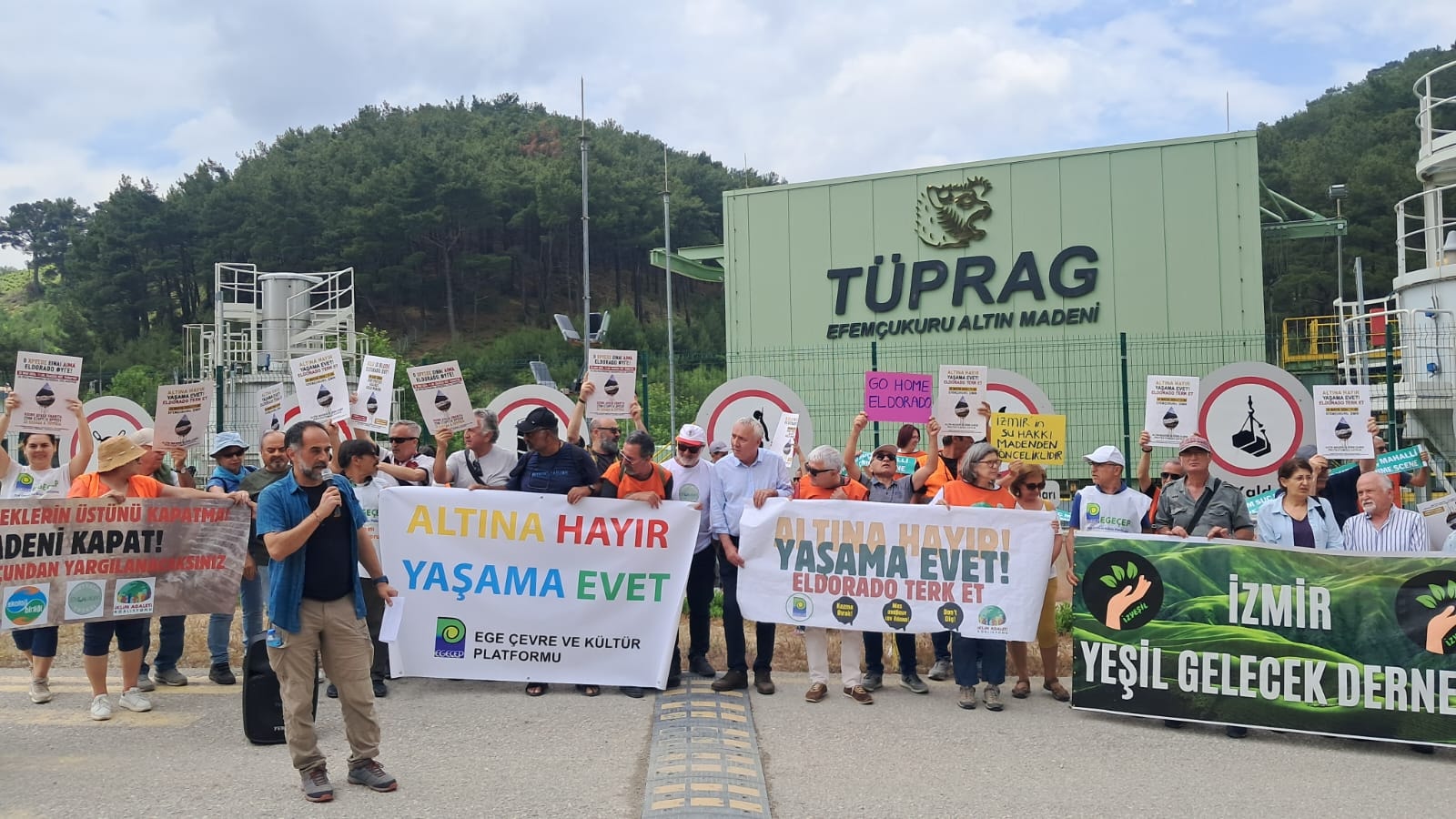 Türkiye’deki demokratik kitle örgütleri İzmir Efemçukuru’nda bulunan Eldorado Altın Madeni İşletmesi’nin önünde buluştu. Yaşam hakkı savunucuları, “Altına hayır, yaşama evet, Eldorado terk et” yazılı pankart ve Türkçe, Yunanca, İngilizce dövizler taşıdı. Temsilciler, Türkiye’de 19’u aktif, 22 altın madeni bulunduğunu, en az 20 altın madeninin de hükümetten lisans alarak faaliyete geçme aşamasında olduğunu belirtti. Açıklamada, “Türkiye’de altına verilen değerin, insan ve hayvan hayatından, karbon emisyonlarından, kültürel değerlerden, insanların geçim ekonomisinden daha fazla olduğunu, altın uğruna bunların hiçe sayıldığını biliyoruz. Bu yüzden altın madenciliğine karşı savaşıyoruz” denildi.
