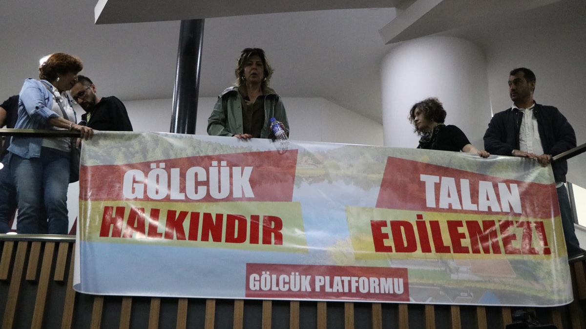 Meclis toplantısı öncesinde Gölcük Tabiat Parkı’ndaki bungalov evlerin kullanımına karşı çıkan Gölcük Platformu, Bolu Belediyesi önünde protesto eylemi yaptı. Protestocuların arasında Bolu Belediye Başkanı Tanju Özcan’ın eşi Meral Özcan’ın da katılması dikkat çekti. Meral Özcan, eylem sırasında 'İlle de Bolu, ille de Gölcük' yazılı pankart taşıdı. Belediye binası önündeki topluluk, daha sonra belediye meclis toplantısının yapılacağı salona geçti. Platform üyeleri, burada ellerinde pankartlarla slogan atarak Başkan Özcan'a tepki gösterdi.