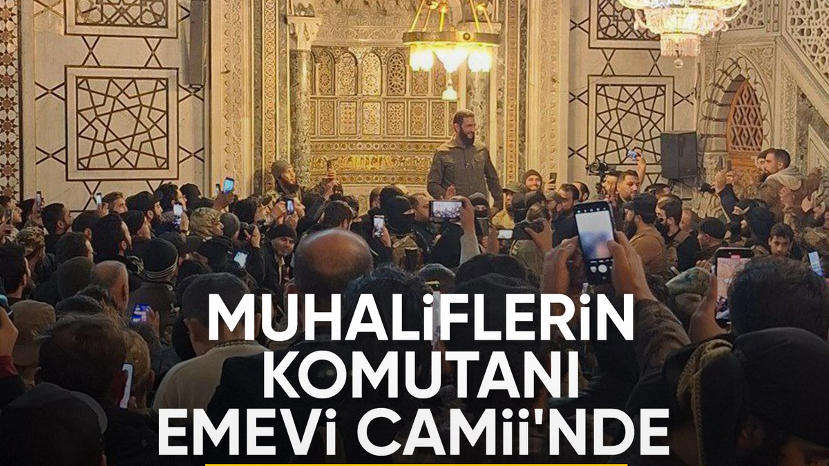 Burada rejim karşıtlarıyla buluşan Colani, kutlamalara destek vermesinin ardından Emevi Camii’ni ziyaret etti.