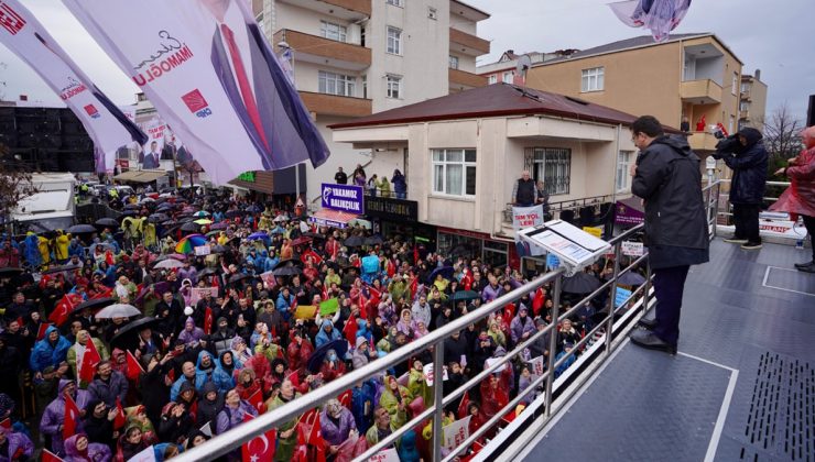 İstanbul Büyükşehir Belediye (İBB) Başkanı ve CHP İstanbul Adayı Ekrem İmamoğlu, Şile’nin ardından Tuzla’da da yoğun yağmur yağışı altında halk buluşması gerçekleştirdi. CHP’nin Tuzla Belediye Başkan Adayı Eren Ali Bingöl ile yağmura rağmen Tuzla Şifa Mahallesi’ndeki dolduran vatandaşlara seslendi. Seçime 5 gün kaldığını söyleyen İmamoğlu cumhurbaşkanı ve bakanların seçim kampanyasına katılmasını eleştirmeye devam etti.