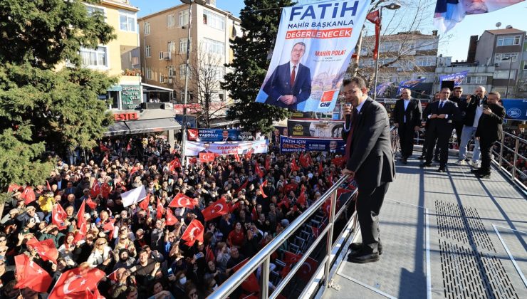İstanbul Büyükşehir Belediye (İBB) Başkanı Ekrem İmamoğlu, CHP Fatih Belediye Başkan Adayı Mahir Polat ile birlikte Kocamustafapaşa Meydanı’nda miting yaptı.