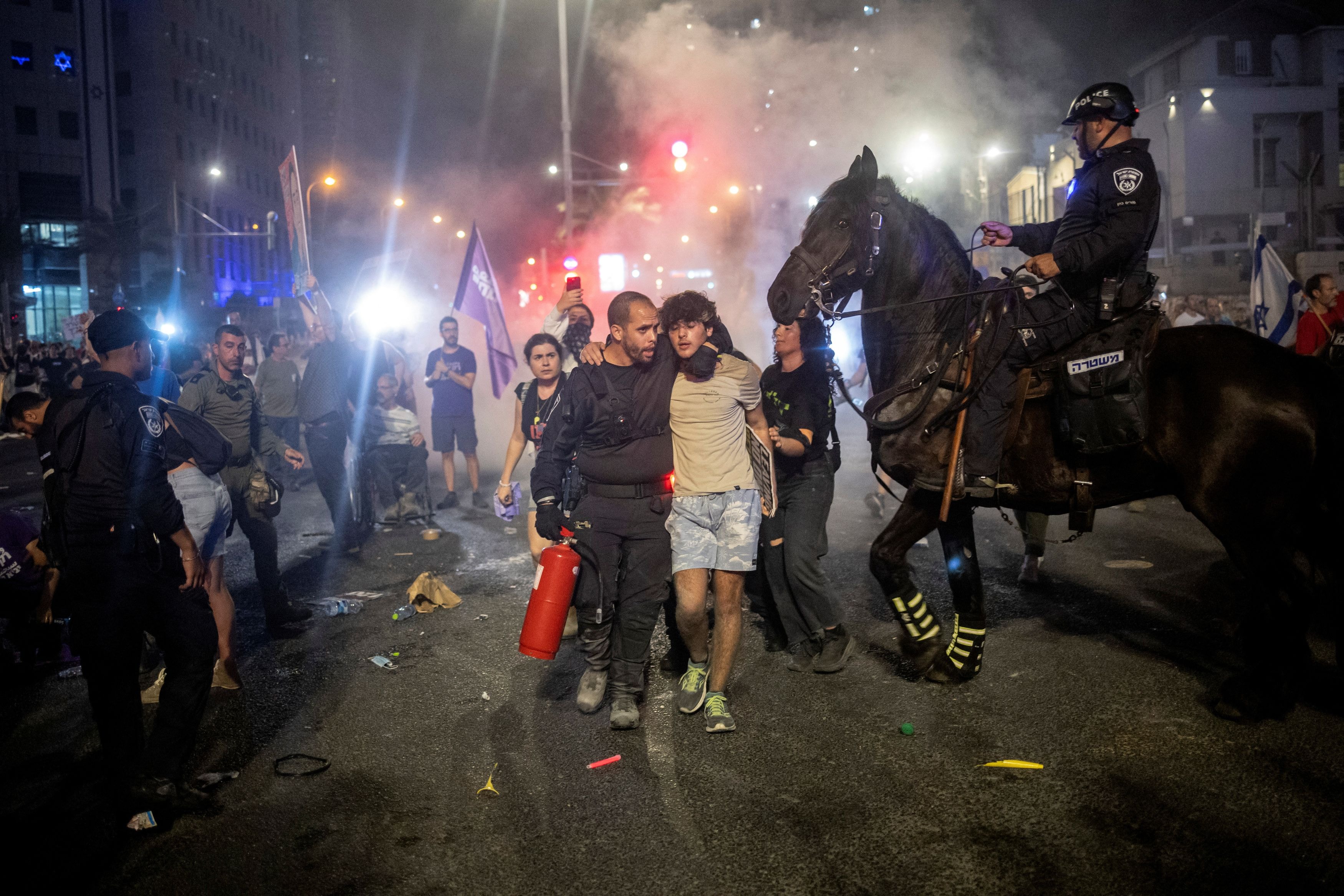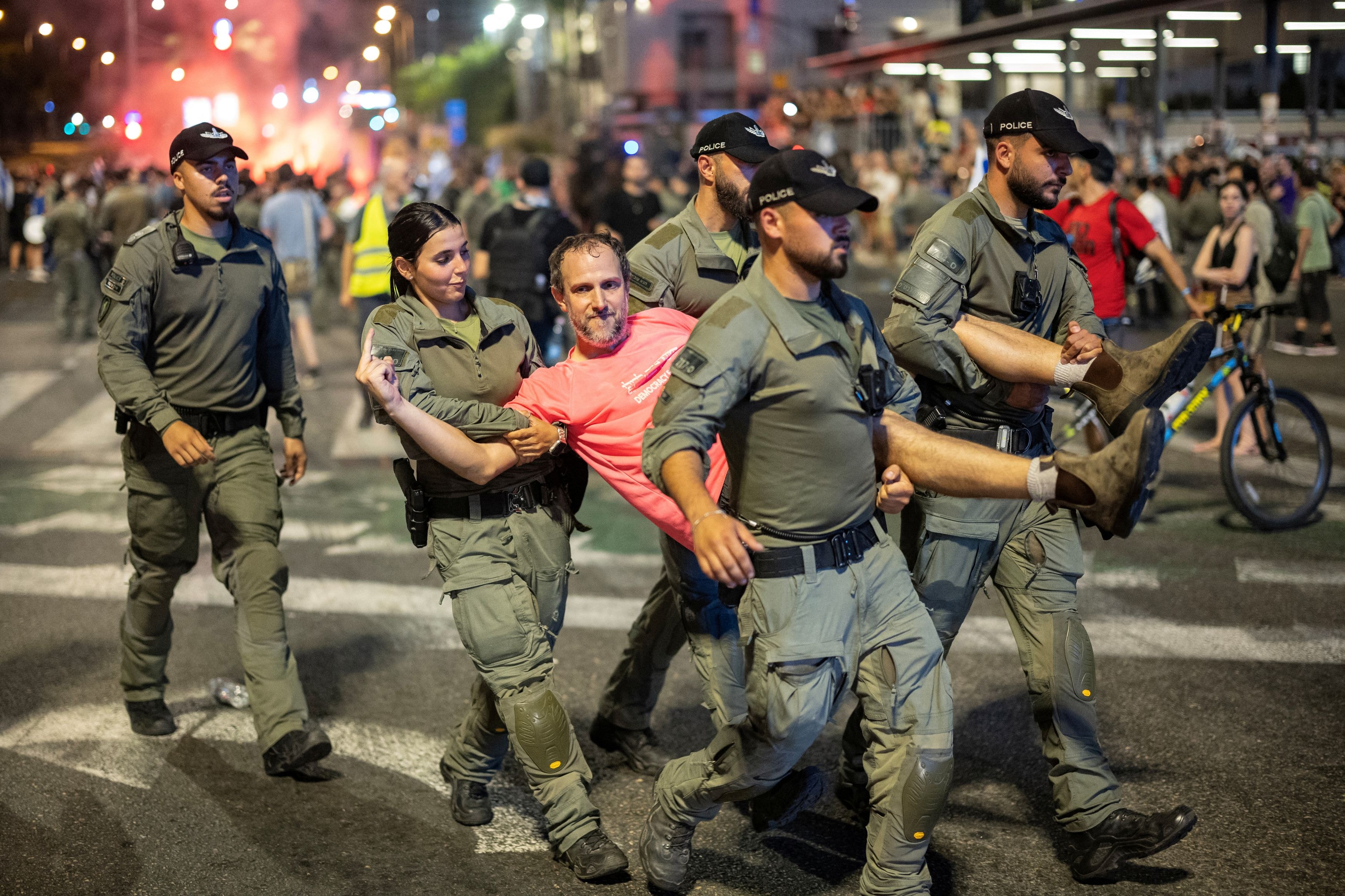 On binlerce İsrailli, ülke genelinde düzenledikleri gösterilerde bir kez daha esir takası anlaşmasının yapılması, Netanyahu başbakanlığındaki hükümetin istifa etmesi ve erken seçimlere gidilmesi yönündeki taleplerini yineledi.