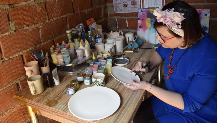 Ceyhan, atölyede hem üretim yaptığını hem de seramik sanatına ilgi duyan kadınlara, engelli bireylere ücretsiz eğitim verdiğini dile getirdi.