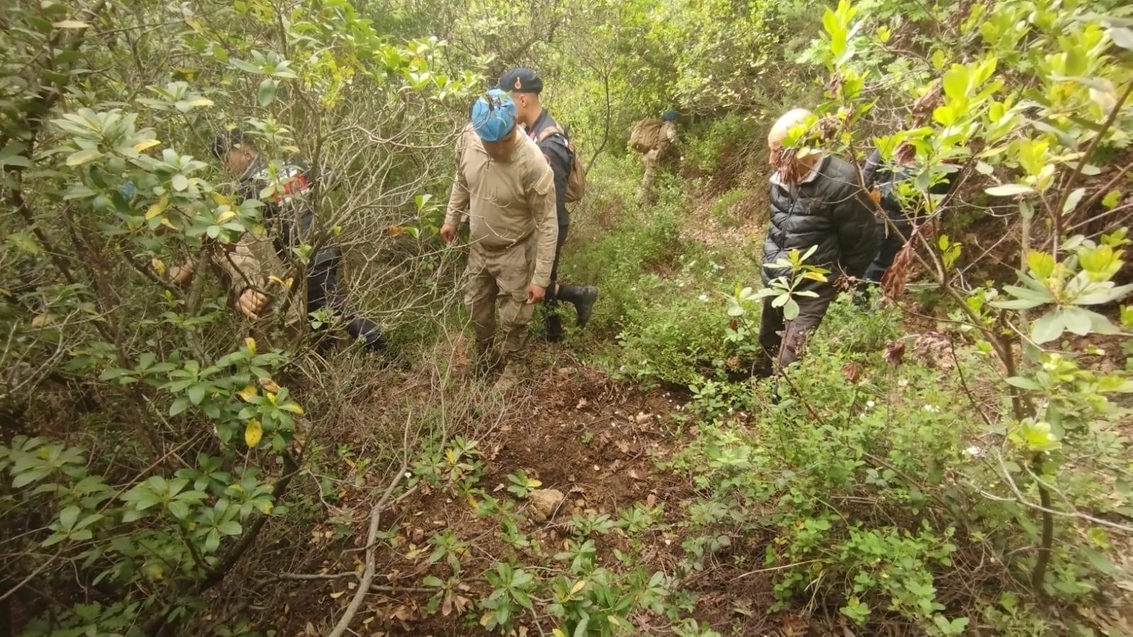 hava şartlarına bağlı olarak üstünün bitki örtüsüyle kaplanması ve toprak altında kalmış olması ihtimaline karşı alan taramasını kadavra köpeği ile detaylı olarak yürütüyor.