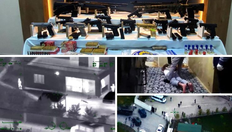 Helikopter ve zırhlı araç desteğiyle eş zamanlı operasyonda çok sayıda tapu, çek, senet, silahlar ve suç delilleri ele geçirildi. Polisten kaçmaya çalışan zanlılardan bazıları yatak odasında rulo halindeki halının içinde, bazıları helikopter destekli operasyonda açık arazide kovalamaca sonucu yakalandı.