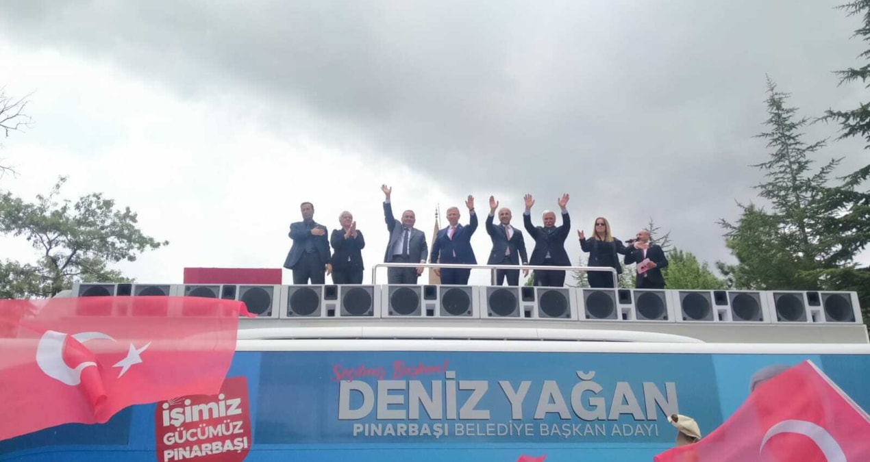 YSK'nın seçimlerin yenilenmesine kararı verdiği Kayseri’nin Pınarbaşı ilçesinde CHP’nin belediye başkan adayı Deniz Yağan miting yaptı. Mitinge destek için gelen Ankara Büyükşehir Belediyesi Başkanı Mansur Yavaş, Keçiören Belediye Başkanı Mesut Özarslan, CHP'nin Kayseri il ve ilçe başkanları yanı sıra belediye başkanlar katıldı. Pınarbaşı Kaymakamlığı Hükümet Konağı önündeki miting, İstiklal Marşı'nın okunması ve saygı duruşuyla başladı. Mitinge katılanlar ellerinde Türk bayrağı taşıdı, miting aracından çalınan şarkı ve marşlara eşlik etti.