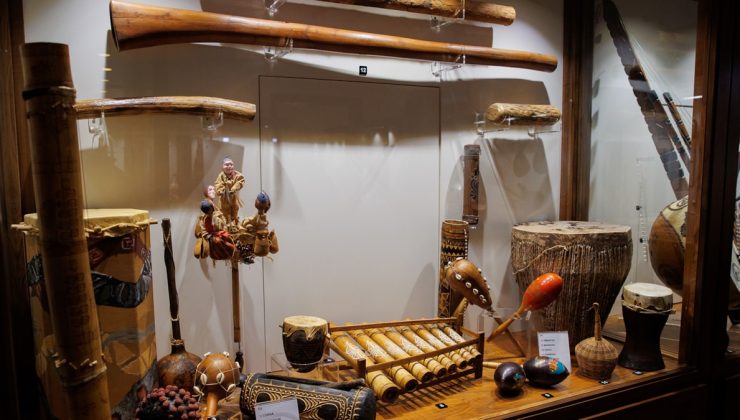 Müzede, kaval, kemane, kemençe, bağlama, cura, koltuk davulu, darbuka, çıngırak, zilli tef, çömlek darbuka, klasik kemençe, ut, lavta, kanun gibi Anadolu çalgıları ile flüt, org, ağız orgu, melodika, armonika, ağaç flütü, marakas, conga, düdük, tef ve gitar, zither, akordiyon gibi farklı materyallerden yapılmış yabancı menşeli enstrümanlar bulunuyor.