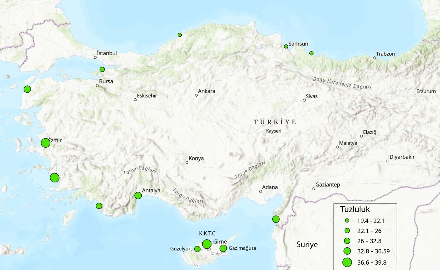 Tuzluluk değerlerinde farklı denizlerin kendine özgü özelliklerinin ortaya konduğuna dikkat çekilen raporda, şu bulgular yer aldı: