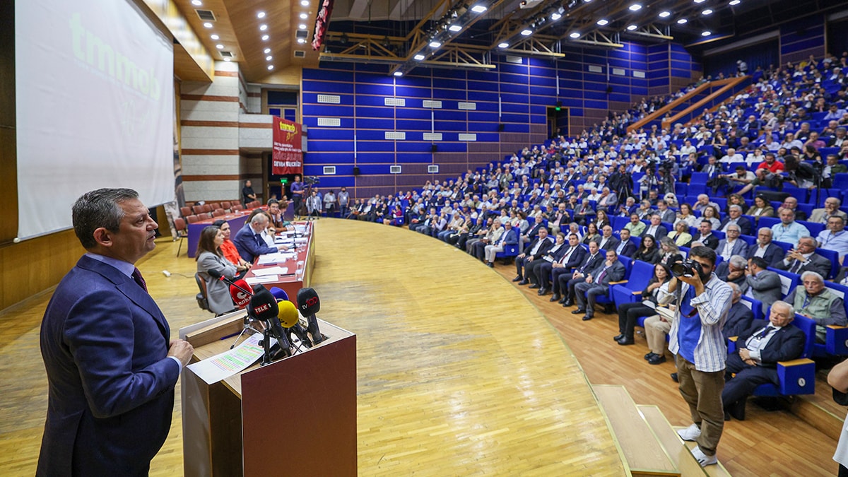 CHP Genel Başkanı Özgür Özel, Ankara’da, Kocatepe Kültür Merkezi’nde düzenlenen Türk Mühendis ve Mimar Odaları Birliği (TMMOB) 48’inci Olağan Genel Kurulu’nda konuştu.