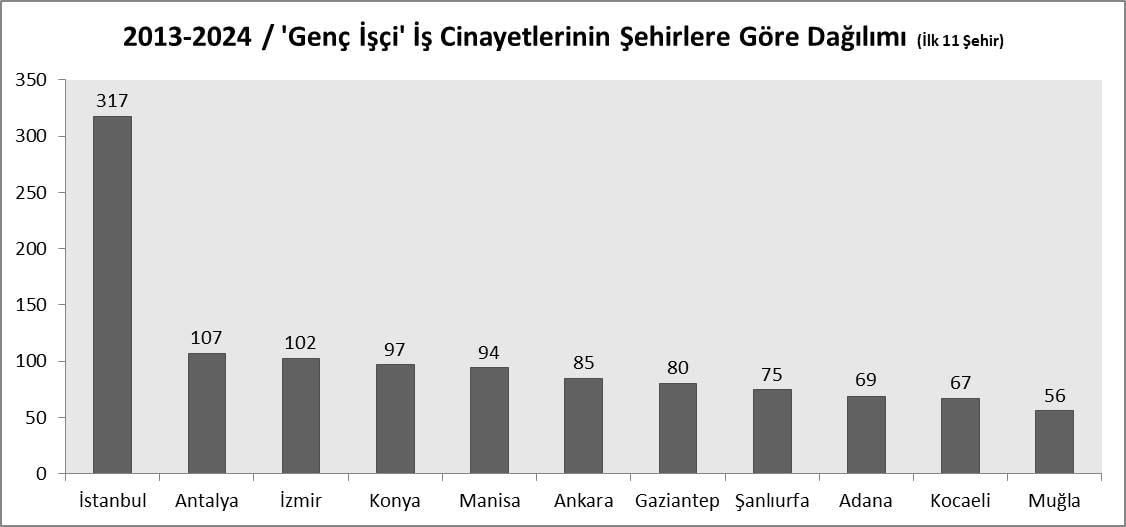 Raporda genç işçi ölümlerinin en çok yaşandığı iller ise şöyle sıralandı: