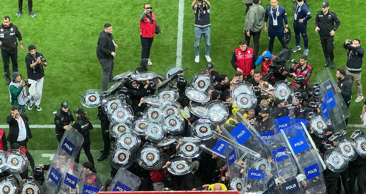 - Yaşanan olay üzerine, Fenerbahçe Futbol Takımının güvenliğini sağlamakla görevli emniyet güçlerimiz, saha içerisine girerek olaylara müdahale etmiştir.