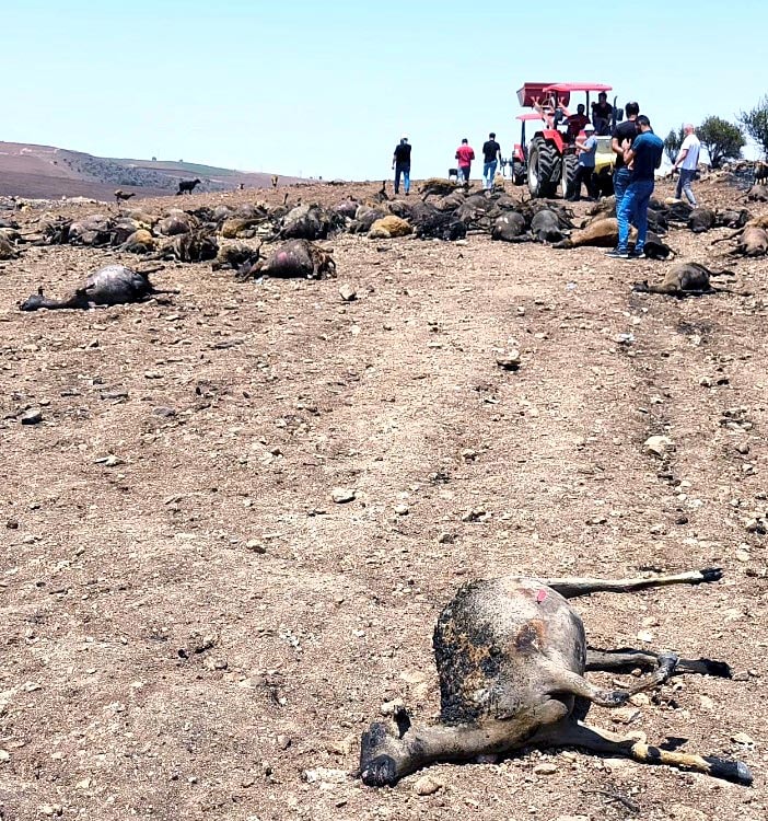 Telef olan hayvanlar, aşırı kavurucu sıcakların da etkisiyle çevreye bulaşıcı hastalık ve kötü koku yayılmaması için iş makinelerinin da yardımıyla kazılan derin çukurlara atıldıktan sonra üzerleri dezenfektan dökülerek kapatıldı.
