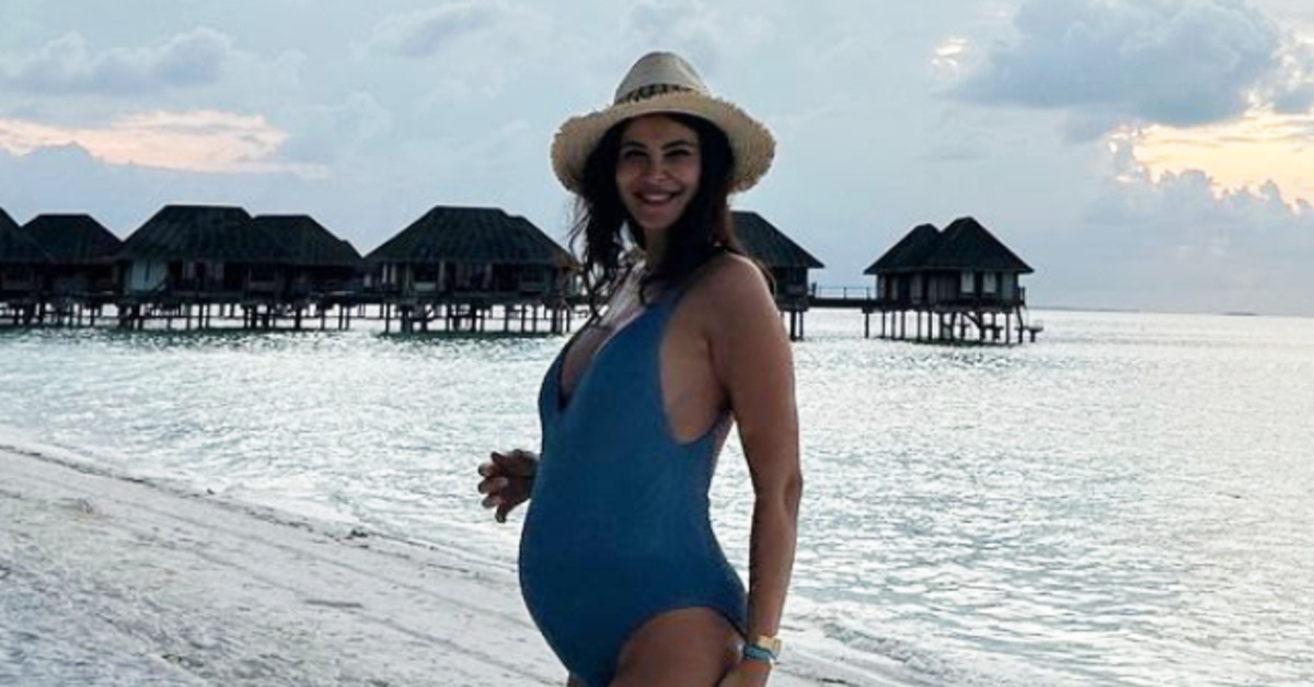 Paylaşımlarına devam eden Demirel, bu kez büyüyen karnıyla tatilden verdiği pozları paylaştı.